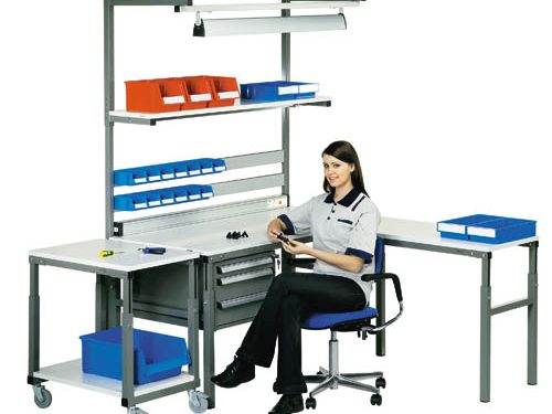 Postes de travail robustes et ergonomiques pour la maintenance, le montage, le contrôle qualité ou la préparation de commandes. Avec ou sans rangement intégré. - Casiers vestiaires